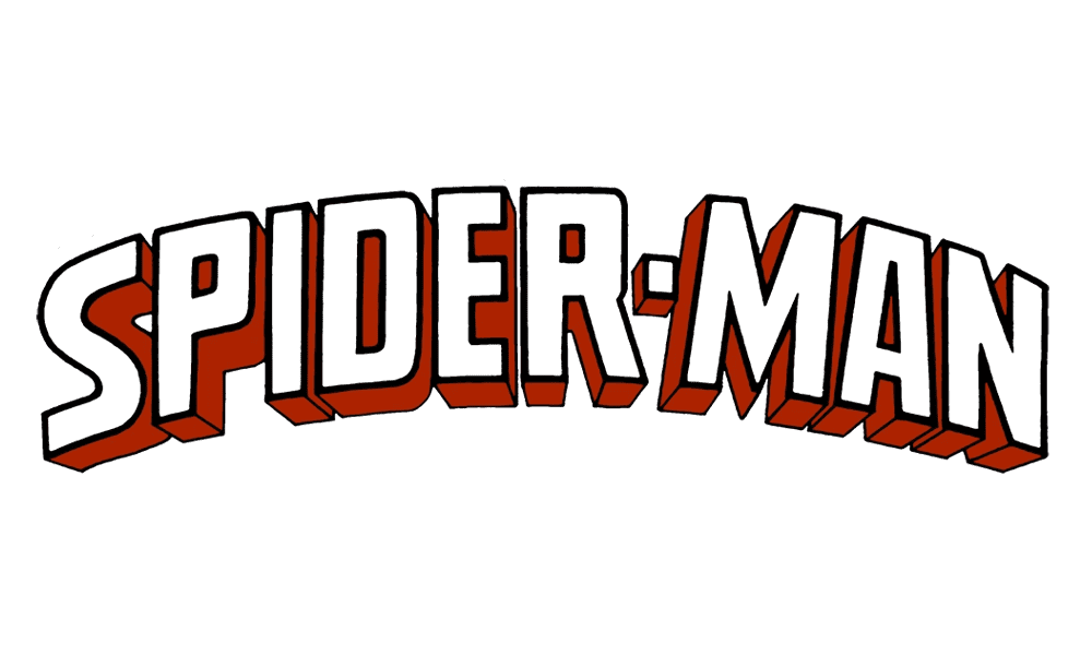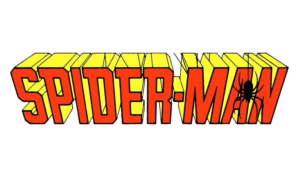 Originally, the logo consisted of a single wordmark written as ‘Spider-Man’, but with exclusively capital letters. The font used here was a soft-shape sans-serif style. The colors: yellow with red undersides. By ‘undersides’, one should mean the sides seen because of the perspective effect. The word was also curved downwards somewhat.