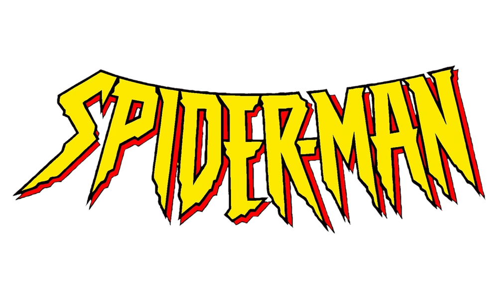 This is the wordmark for the ‘Spider-Man: the Animated Series’. They finally made it flat and upgraded the font to look more aggressive and fell spider-y, so to speak. They basically made the letters extra tall, jagged and covered in red outlines. The letters proper were white.