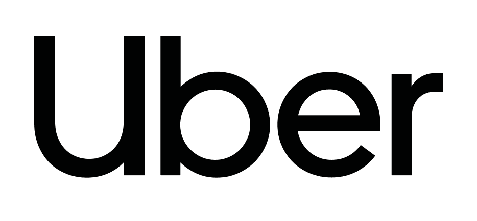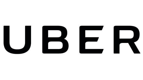 The logo shows an animated Uber text with a black background and two road lanes at the opening and closing. The text font used is the Uber Move (a Sans-serif-inspired font).