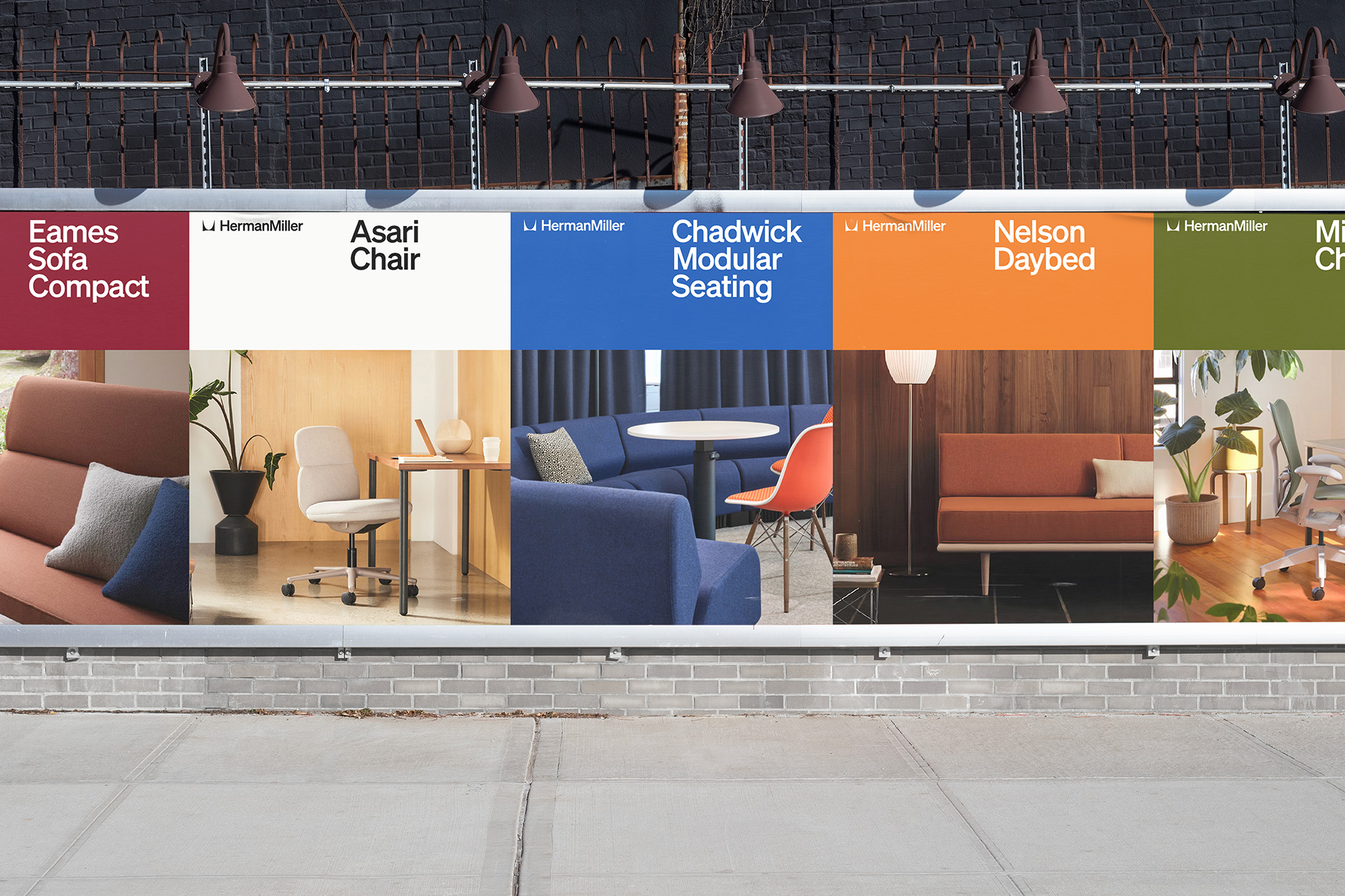 The updated color palette draws inspiration from Herman Miller’s historical product designs. Rich and varied hues complement the primary brand color, Herman Miller Red, which remains central to the identity. This thoughtful integration of color connects the brand’s visual system to its product heritage while offering versatility for modern applications.