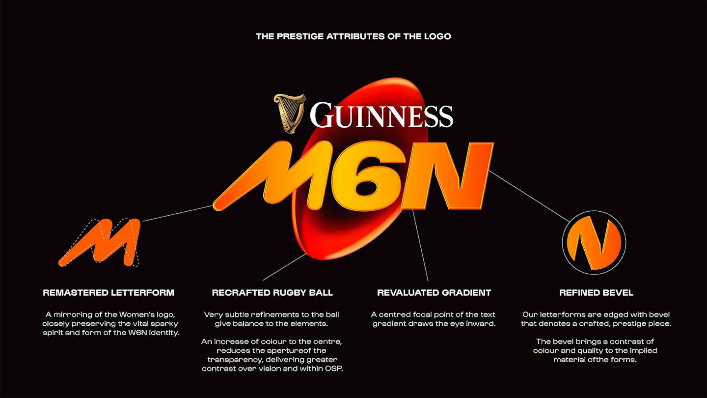 The new Men’s Six Nations logo marks a complete departure from this approach. The phrase “Six Nations” has been replaced by the abbreviation “M6N,” presented in a visually dynamic and dimensional design. Similarly, the Women’s and U20 championships now use “W6N” and “U6N” logos. A notable graphic feature is the stylized integration of unconventional letters “M,” “W,” and especially “U” with traditional “N’s,” creating unique and memorable wordmarks. Set against elliptic rugby balls in distinct colors, the logos achieve a visually impressive effect.