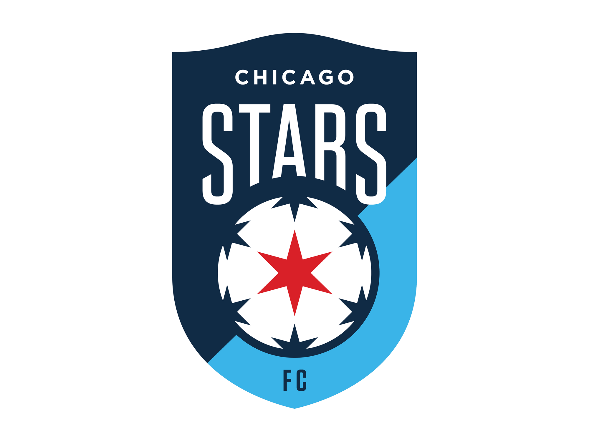 The “CHICAGO” typeface is inspired by the iconic marquee letters of the Chicago Theatre, while the word “STARS” below the ball is set in a custom font that gracefully curves along the shape of the ball. The shield’s split colors—dark blue and light blue—symbolize the lakefront meeting the waters of Lake Michigan. A similar theme of the close relationship between the city and a soccer club can be found in the visual identity of the Chicago Fire FC.