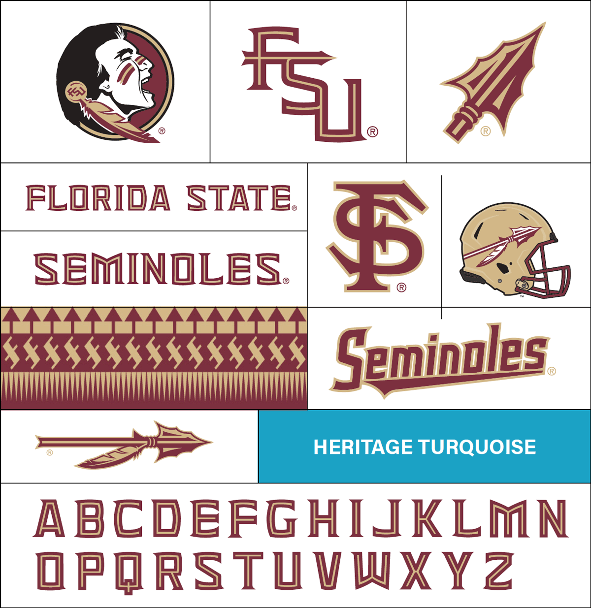 The Seminole head logo, described as the most iconic and recognizable image for FSU athletics, was slightly adjusted and complemented by a series of secondary emblems redesigned in gold and garnet to aesthetically align with the FSU logo. These emblems, such as the FS monogram, a football helmet, and a spearhead, have long represented the traditional symbolism of the university’s sports division and are designated for athletics use only.