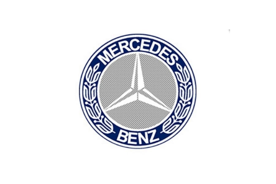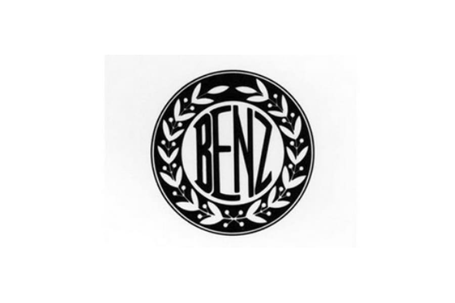 The Benz logo from 1909 was elegant and ornate. Its traditional circular badge had a thick double outline where the stylized wreath was drawn. The wordmark in an eddy custom sans-serif was written in black on a white background of the inner circle. It was an ornate and beautiful logo, which at the same time represented the power and energy of the brand.