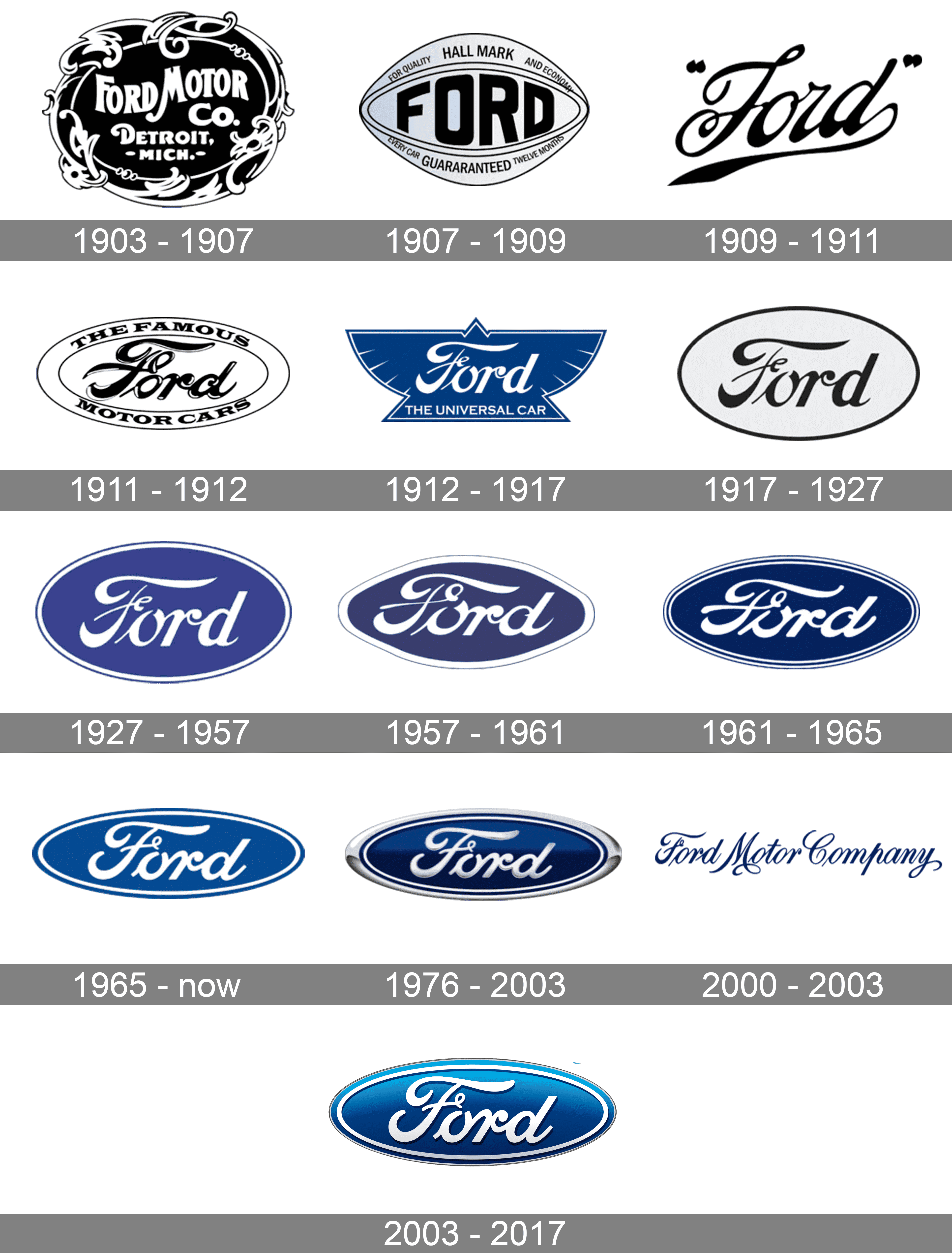 In 1909 the automaker starts during the signature of Henry Ford for its visual identity. It is still the core of the whole company’s concept today, just slightly modified and with the new color palette.