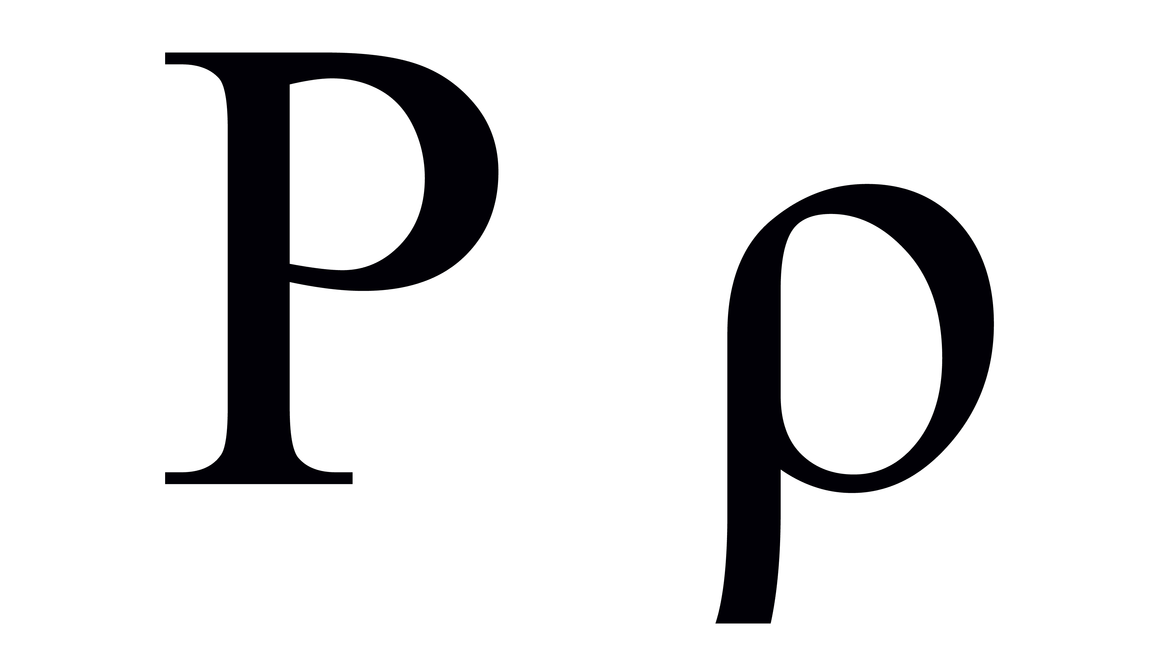 Π π – origin from the Phoenician letter “pe” (πι, pi), from which the Latin P and Cyrillic P. are derived. It conveys the sound “p”. It denotes a mathematical constant, potential energy and transition probability matrix. For example, used in the Piaggio logo.