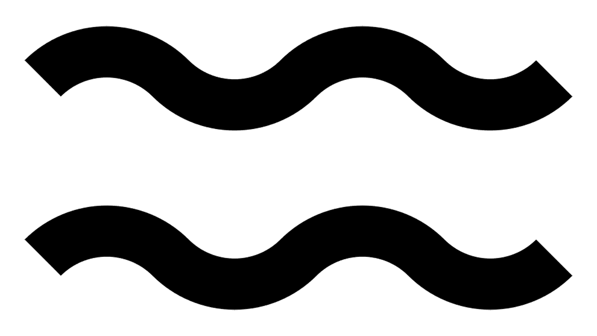 The symmetrical Aquarius symbol is composed of two identical wavy lines, placed one above another, with the peaks drawn sharply. The first association with this symbol is, of course, the ocean waters, however, knowing that Aquarius is a sign of the Air, you can also interpret it as the windy waves. Interestingly, the two waves have not always been a symbol of this zodiac sign. Before the Aquarius was represented by a complex image of a man, pouring water from two jugs on a fish swimming beyond his figure.