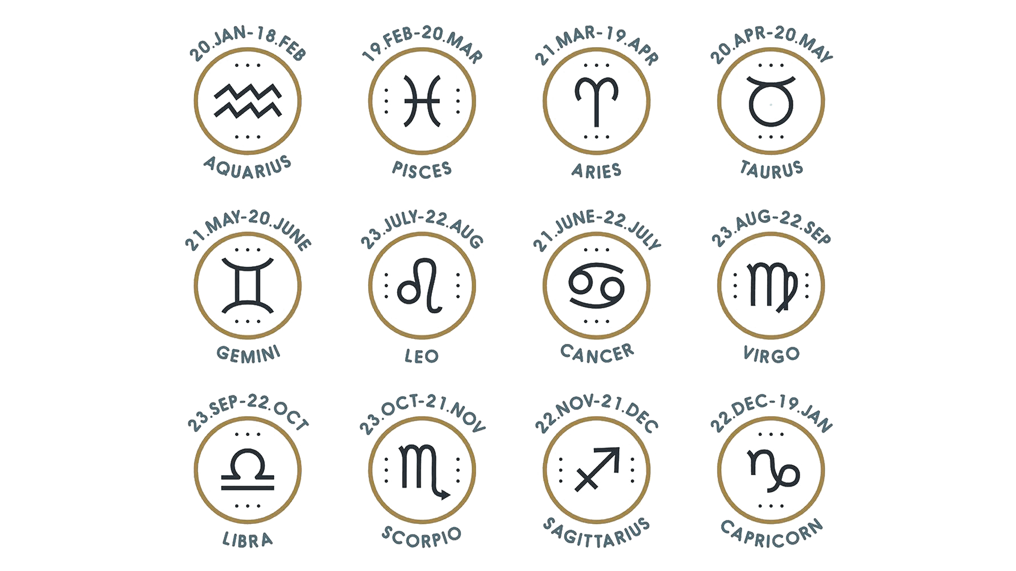 Aries, Taurus, Gemini, Cancer, Leo, Virgo, Libra, Scorpio, Sagittarius, Capricorn, Aquarius, Pisces.