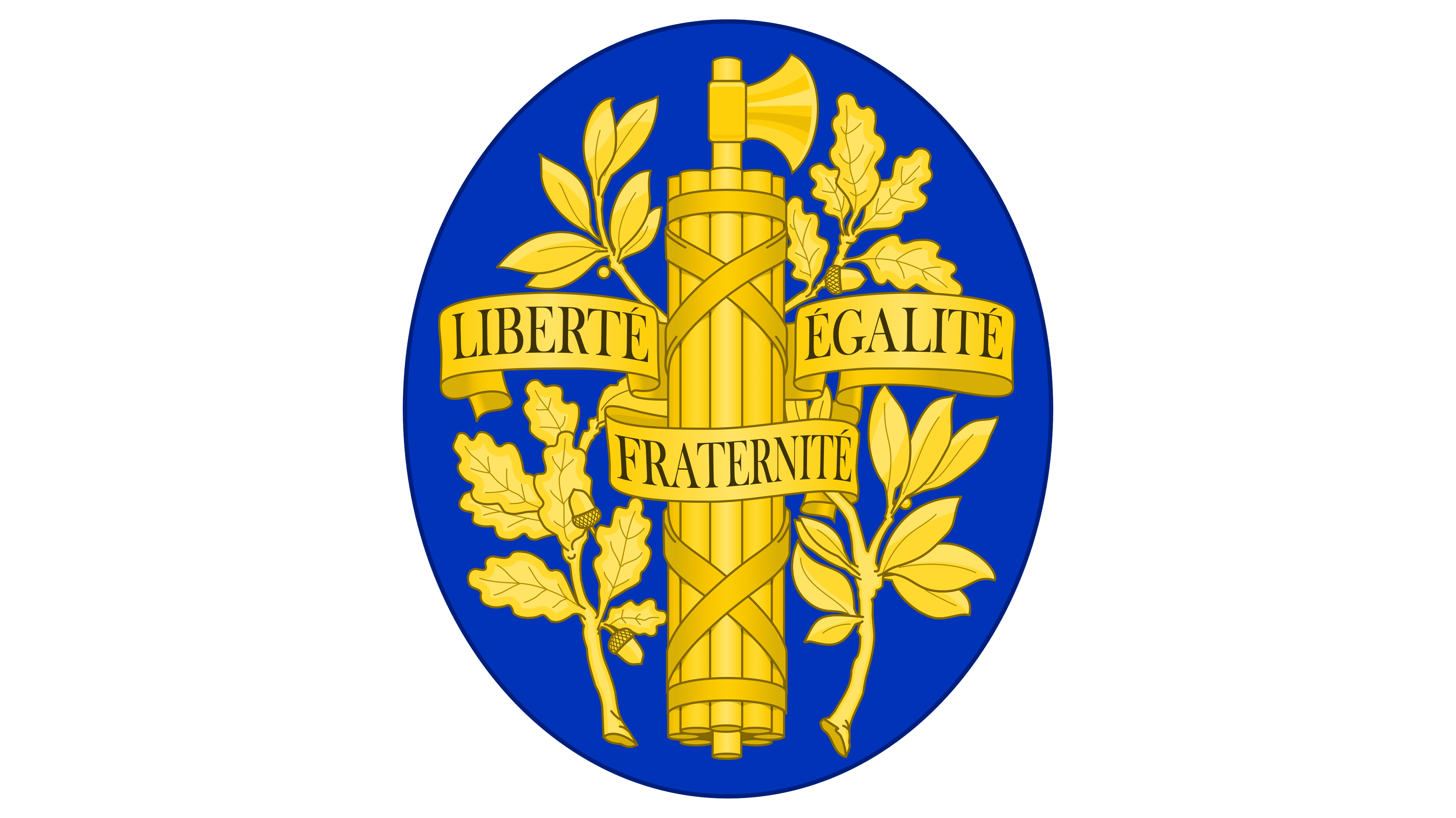 A gold banner goes around the lector’s fasces featuring the lettering “Liberté, égalité, fraternité” (“Liberty, equality, fraternity”), the country’s national motto.