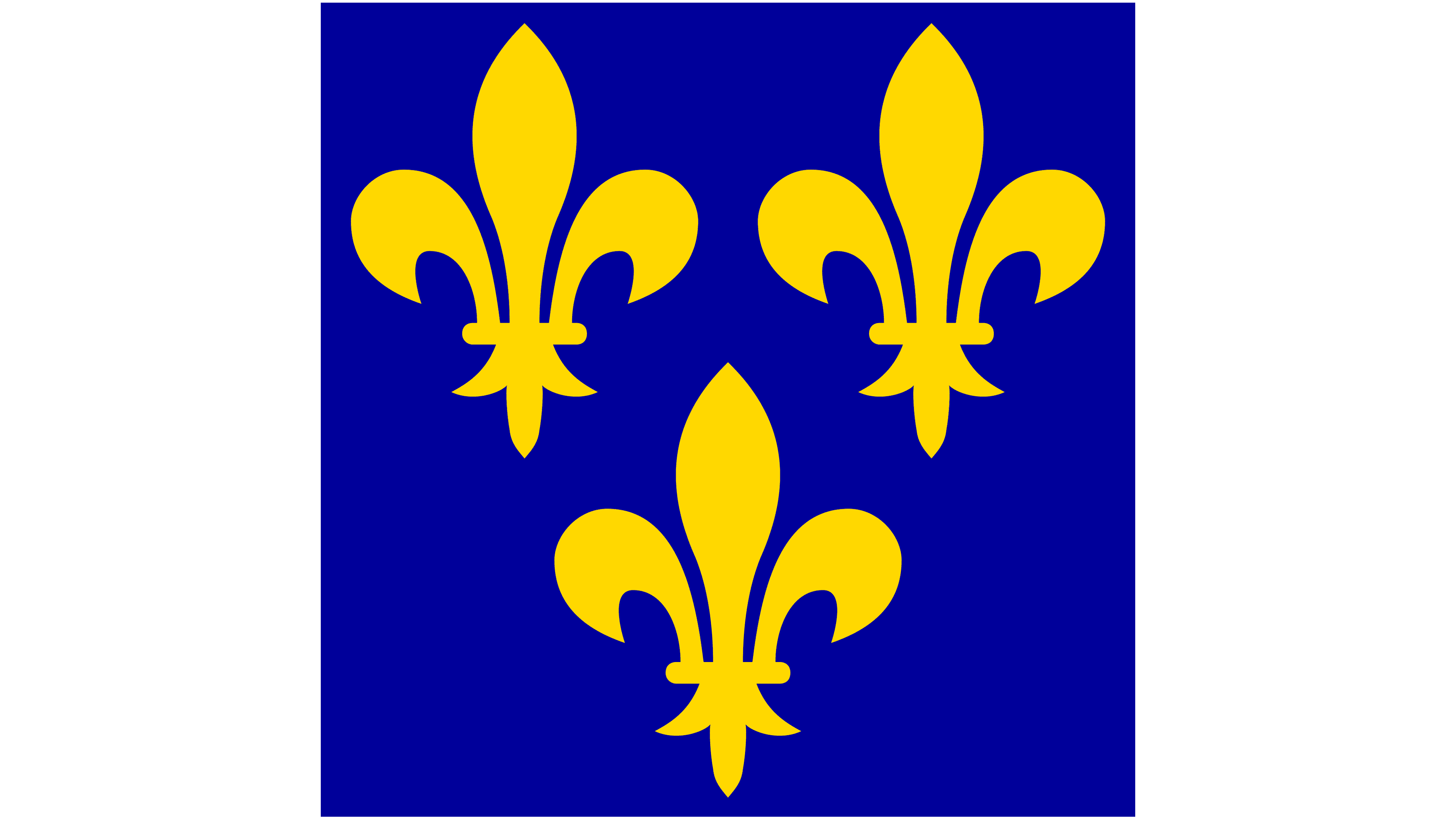 Occasionally, the flag inspired by the main one, with multiple gold fleurs-de-lis, was used, but it featured a plain white background instead of blue.