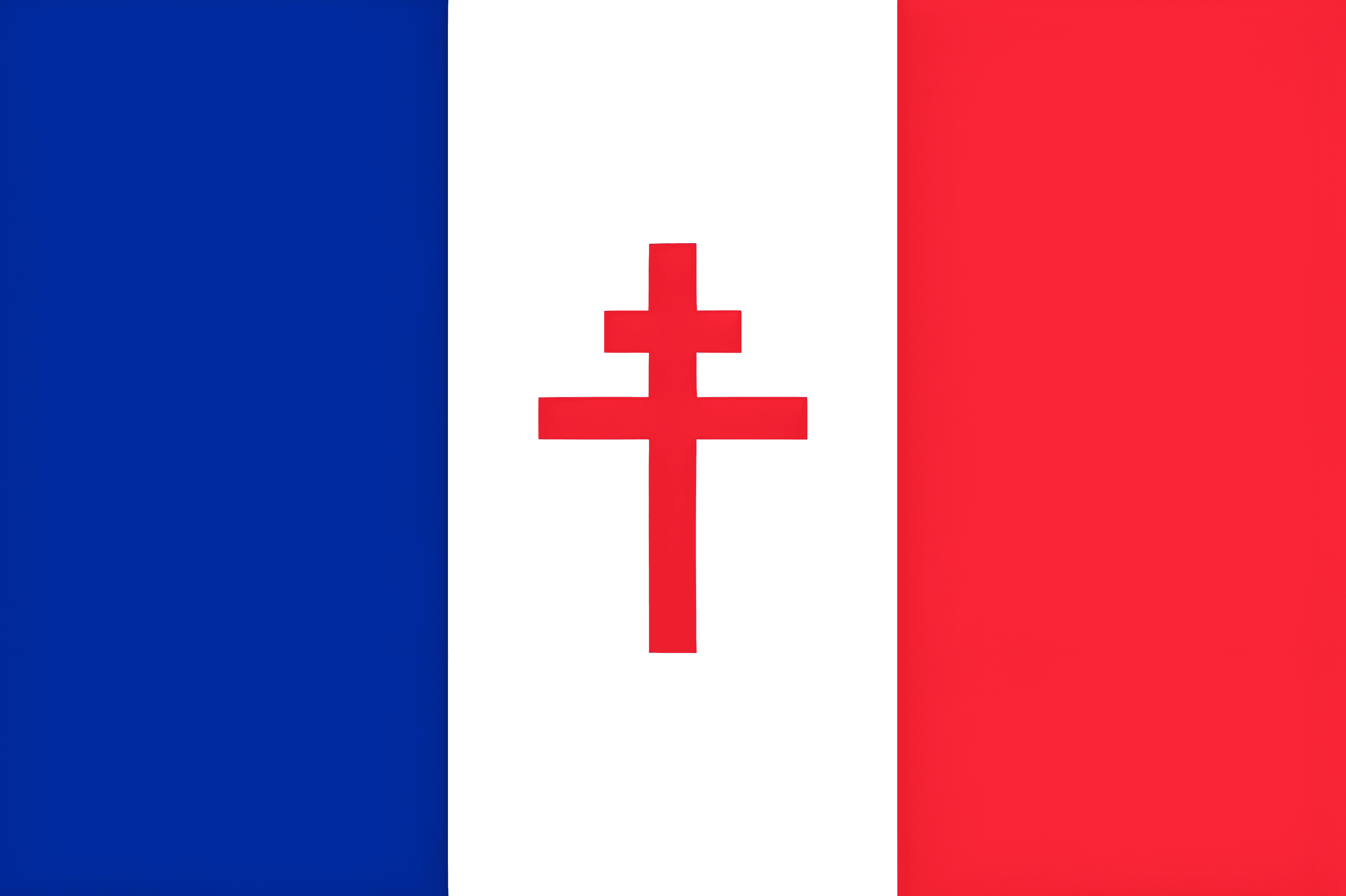A different flag was adopted by the opposing organization, the Free French Forces, which was a resistance government formed upon the dissolution of the Third Republic during World War II. Based on the French tricolor, this banner had a red Cross of Lorraine in the center.