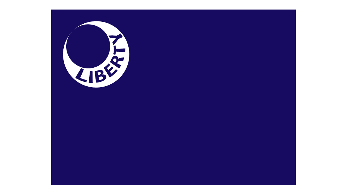 An extremely elegant Moultrie Flag with a stylized white moon on a solid blue background and the bold blue “Liberty” lettering could easily be used as a logo for any modern brand.