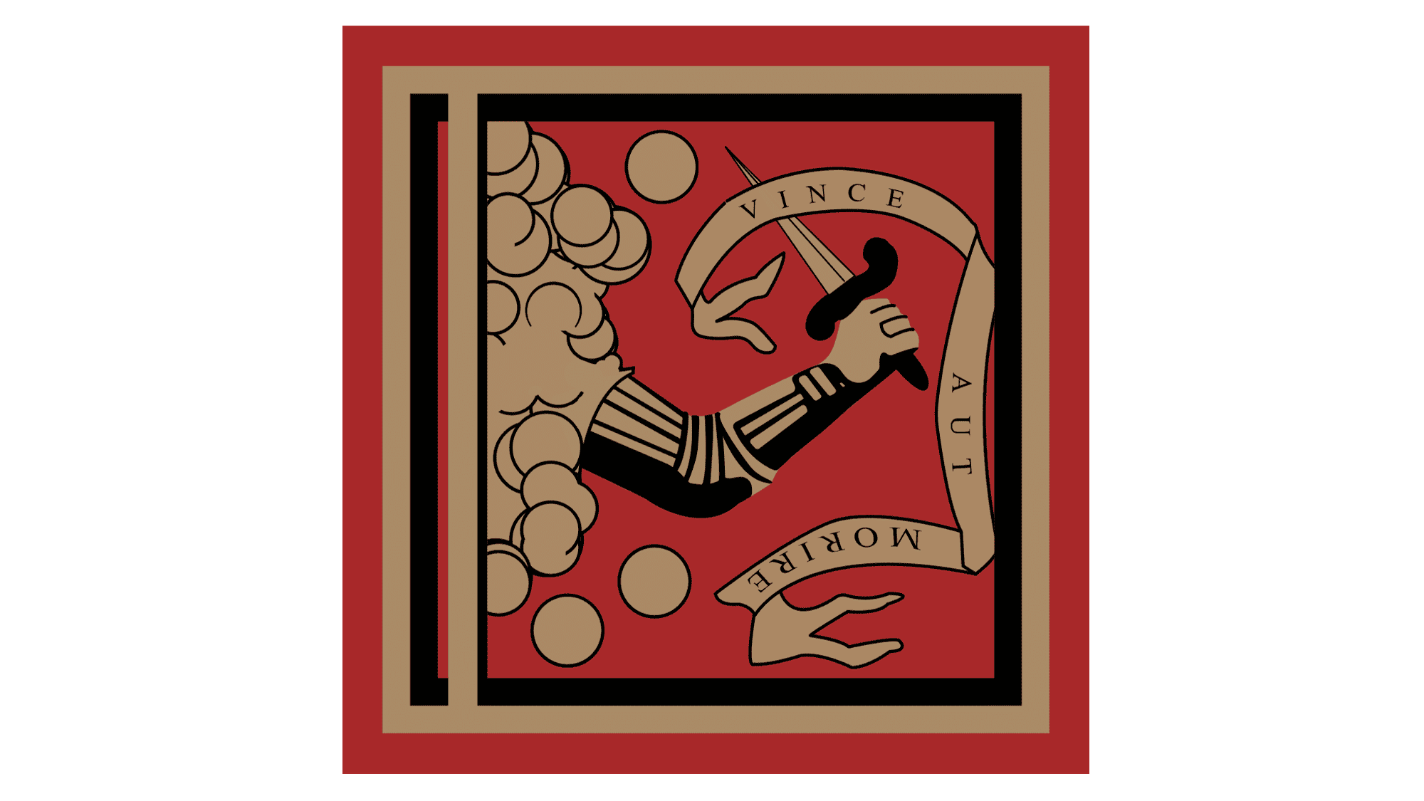 Another flag used before the design was formally adopted as the Bedford Flag, an elegant burgundy and gold composition with a latticed arm raising a sword, and the Latin inscription “Vince Aut Morire” which means “Win or Die”.