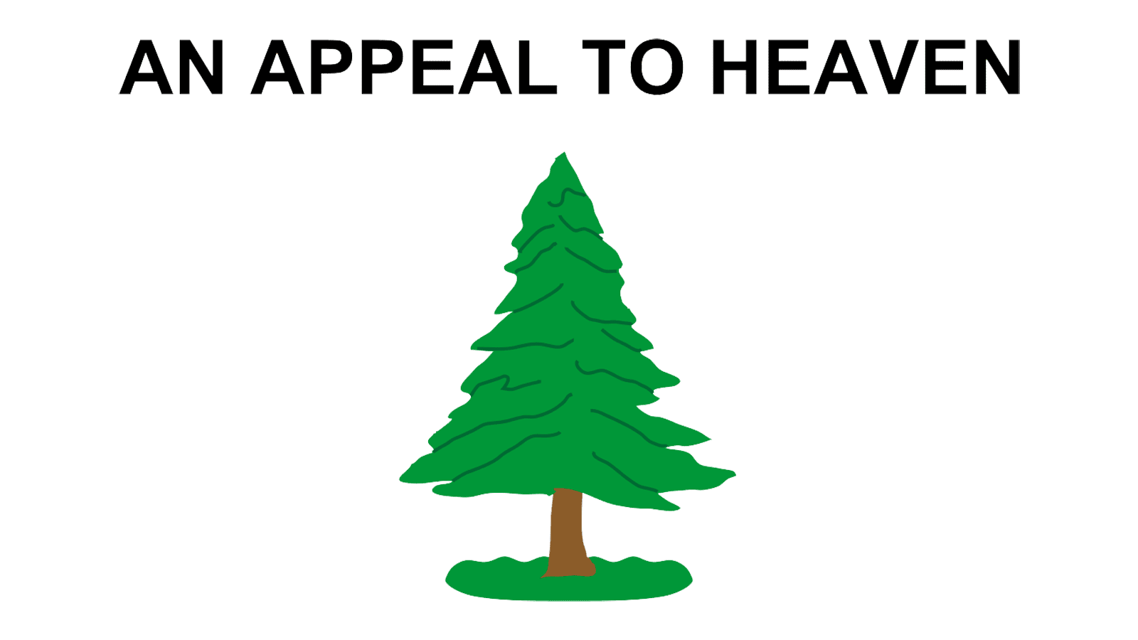 Another Liberty Tree flag, featuring a lone green pine tree on a white background, is accompanied on this flag by the inscription ” An Appeal to Heaven.”