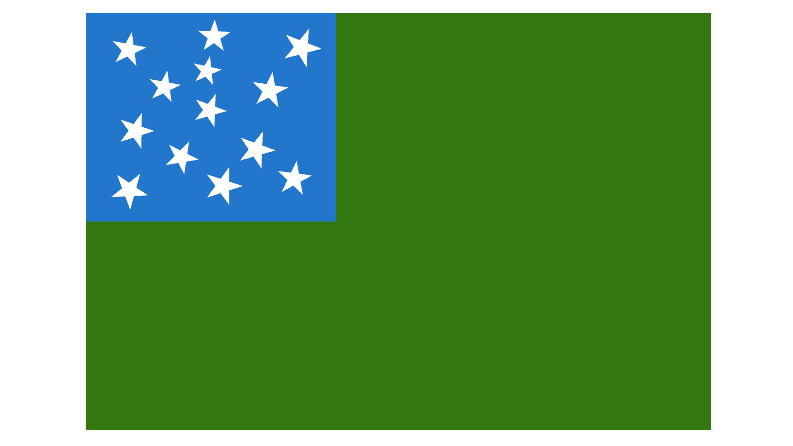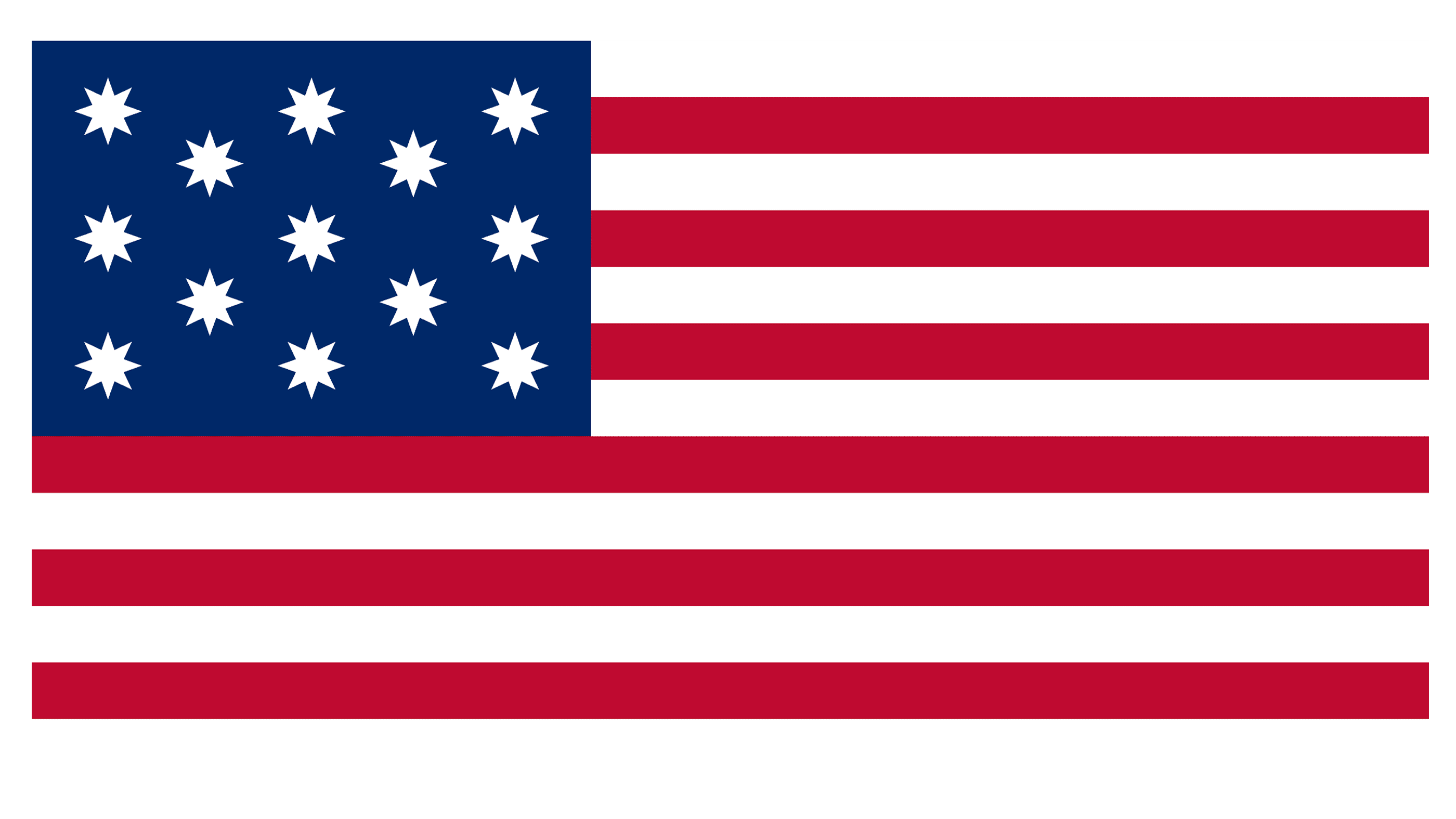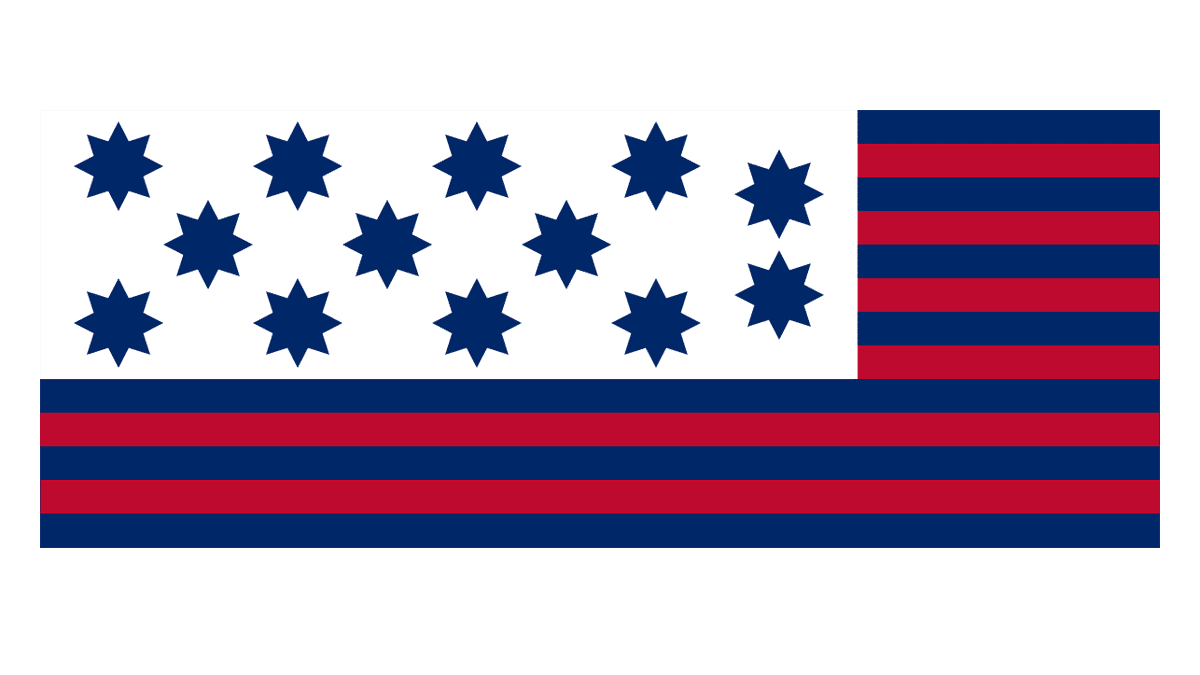 The Shaw Flag also followed all the rules of the Flag Regulations but had its blue area taking the whole height of the left side. The thirteen white eight-pointed stars were drawn on it symmetrically in 1-2-1-2.