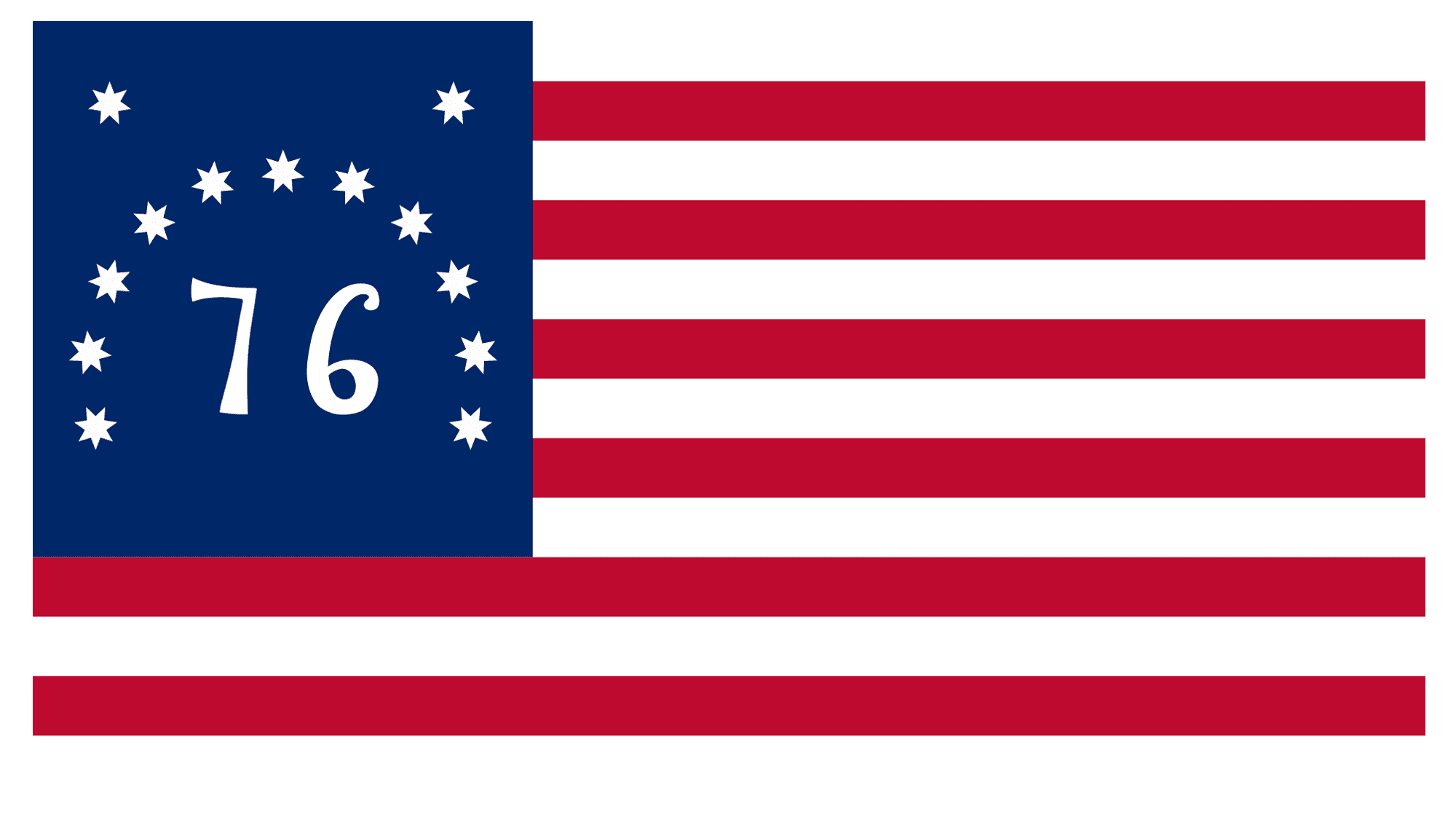The main difference of the Bennington Flag (named after the Battle of Bennington) is the enlarged “76” digit, written on a blue square in the upper left corner of the flag, and accompanied by an arch made of eleven white six-pointed stars, and two additional one in the top corners.