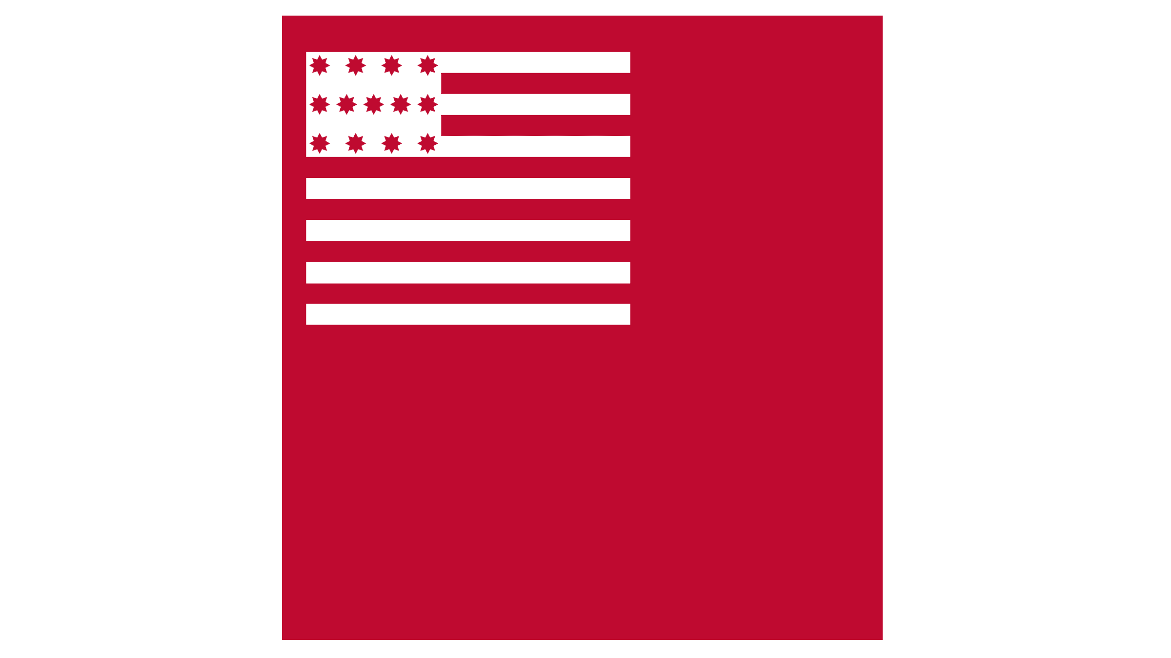 Another flag, named after a battle, is the Brandywine Flag, set in a dramatic red and white color palette. The interpretation of the American flag here takes the upper right corner and lacks blue shades. The red six-pointed stars are located in three horizontal lines 4-5-4. The main shade of the flag is solid red.