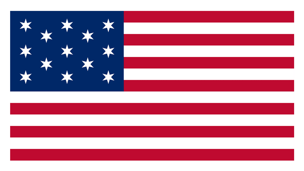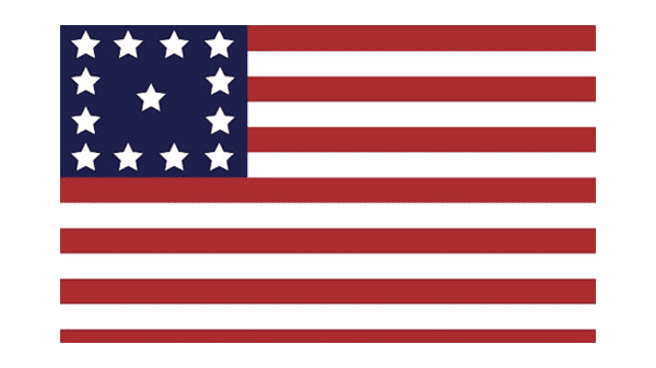 The main peculiarity of the Trumbull’s Saratoga and Yorktown Flag is the geometry on the starry square. The twelve white five-pointed stars are located around the square’s perimeter and the thirteens were placed in the center.