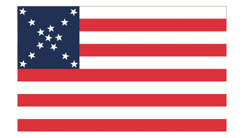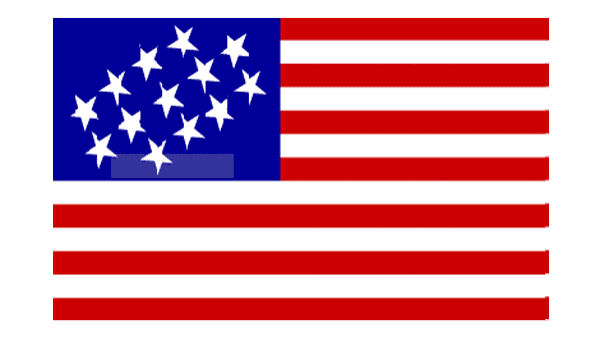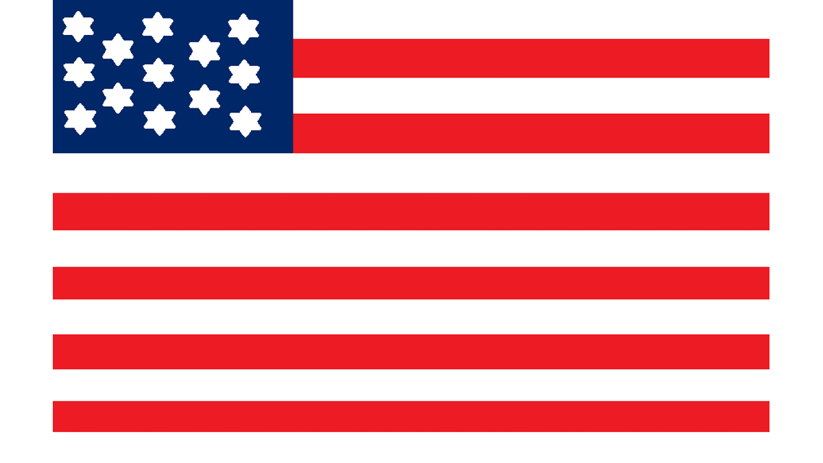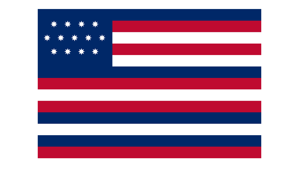 The Alliance Flag, used in 1779, featured the official concept of the composition, with just one difference — the thirteen white stars on the blue background were drawn as the six-pointed ones.