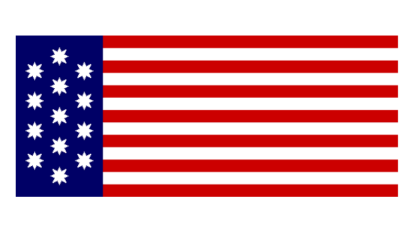 The Nathan Beman flag differed from all others by the number of the stars — there were fourteen white five-pointed stars, set in an interesting composition — four rays coming out of the central ring. The fourteenth star represented the admission of the Vermont State.