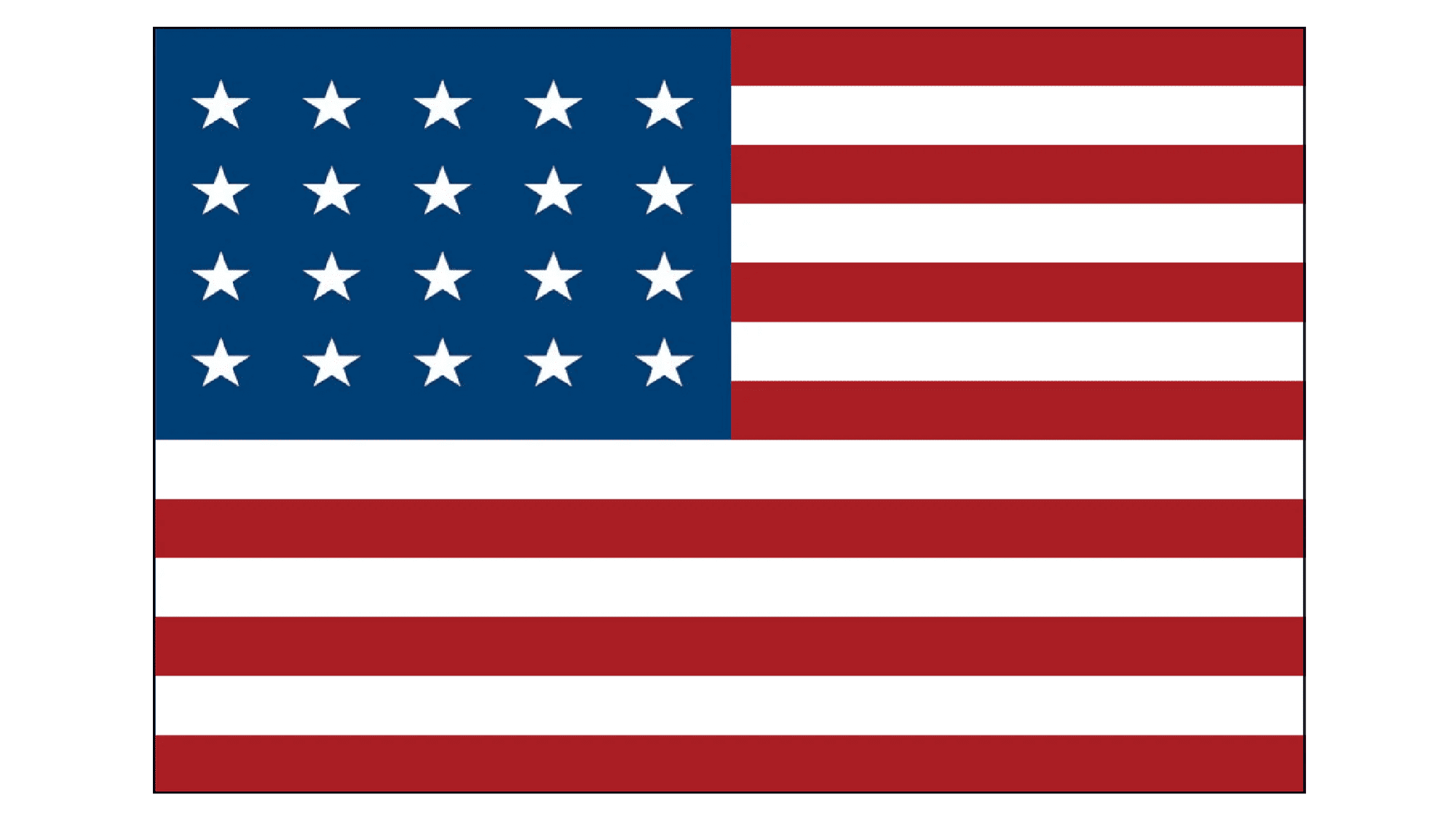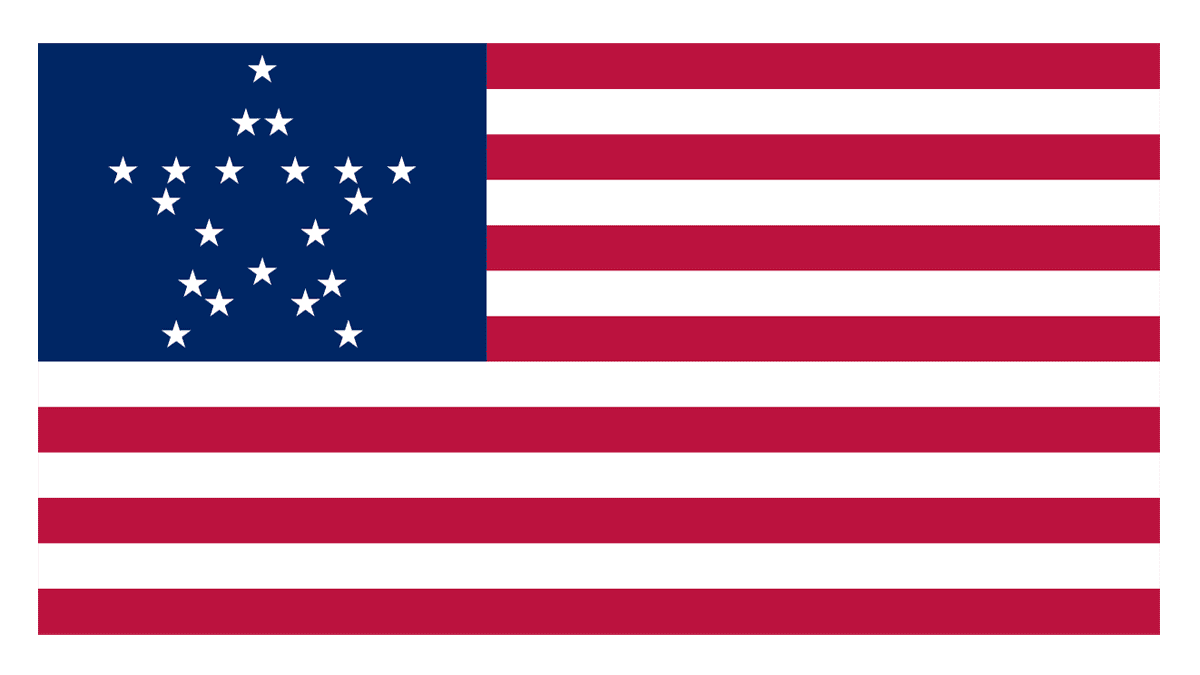 Another version of the American Flag with 20 stars on it featured a modified blue segment. The twenty white five-pointed stars there were arranged into the shape of a large star. The flag was named The Great Star.