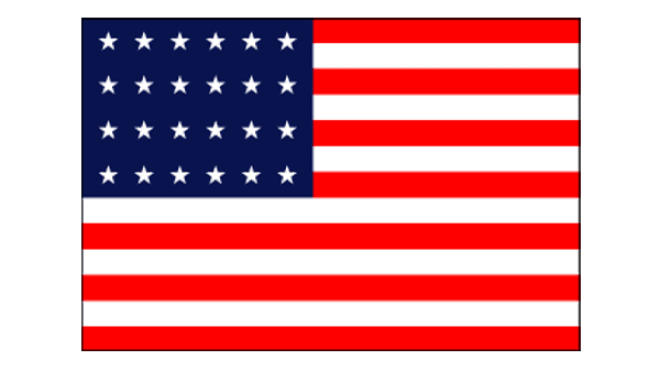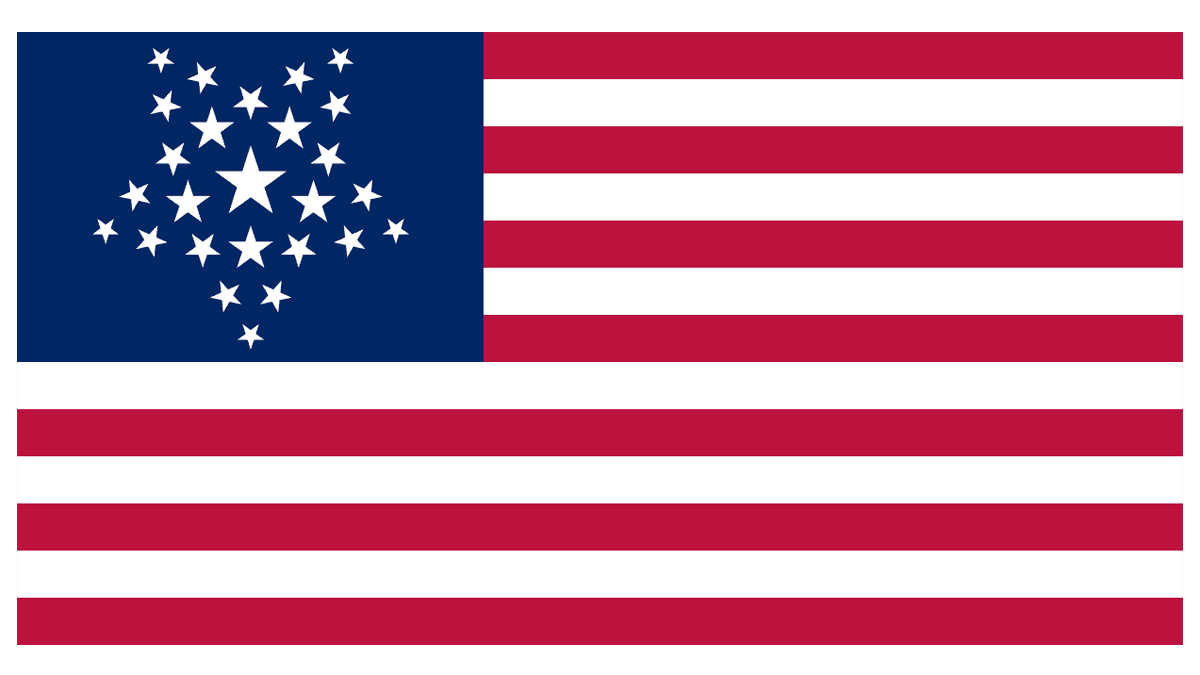 In 1837 another version of the American flag was introduced: with the 26 five-pointed stars arranged into a star shape: the central star was the largest, and the smallest ones were placed on the five peaks.