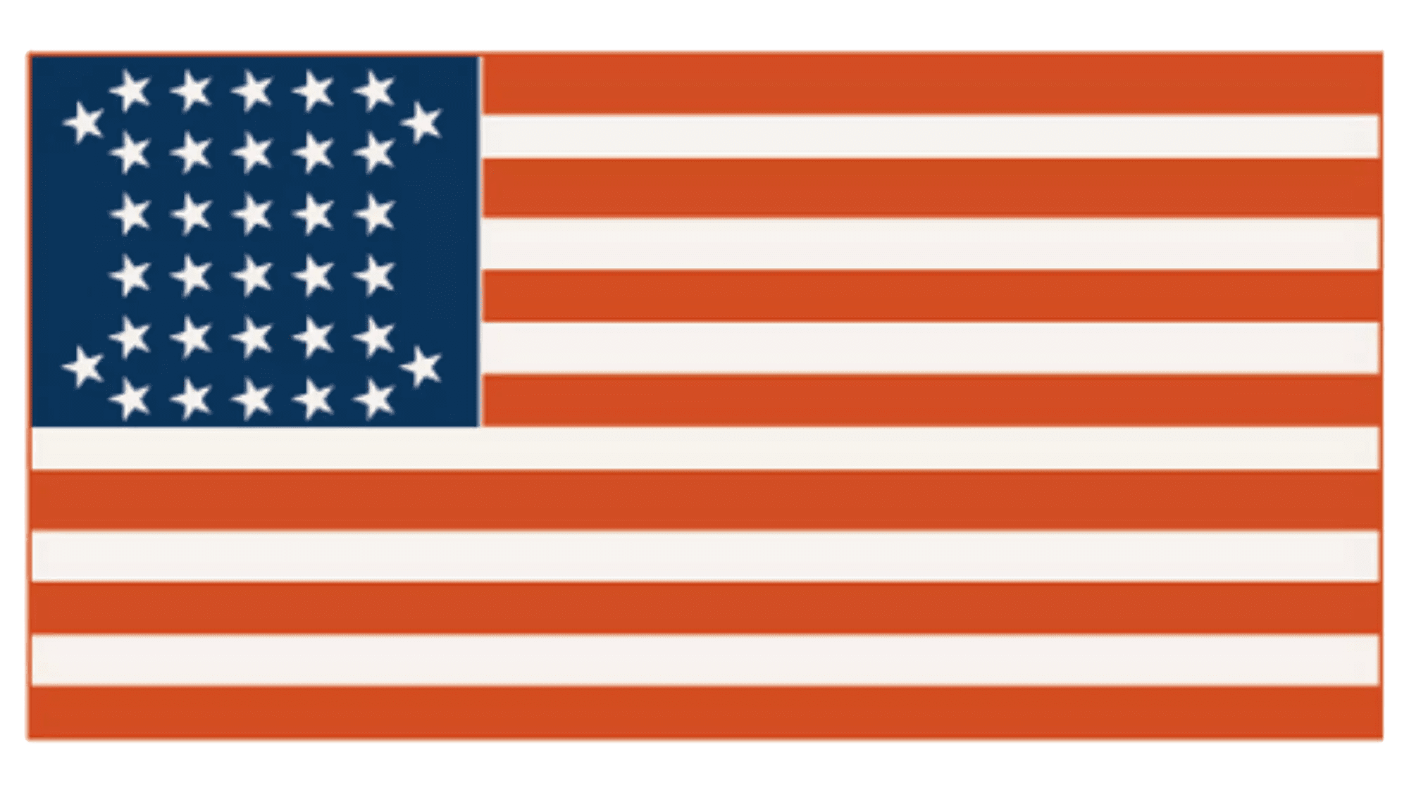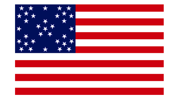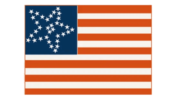 Another rare flag was named The Phalanx, due to an interesting disposition of the stars again. The 34 five-pointed stars were placed in six horizontal lines of 6, with the four additional ones set in the corners, slightly shifted in between the main lines.