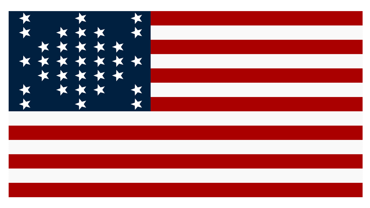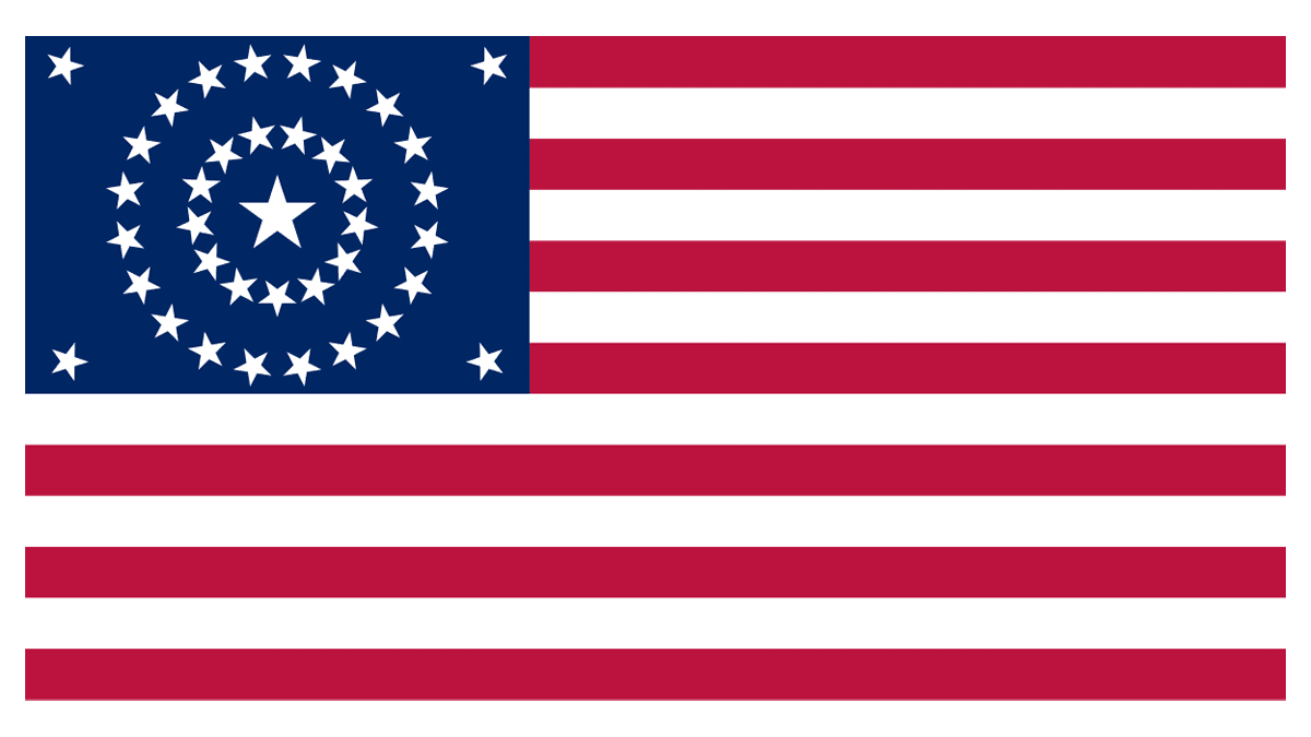 The Wagon Wheel Flag featured 36 five-pointed stars, arranged into a circle, with a distinctive ring framing and the central part set more chaotically, which made the composition resemble a wheel.