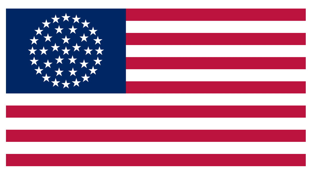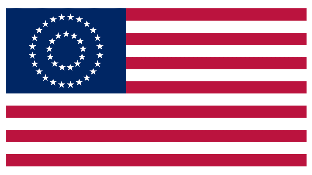The Medallion Continental flag, introduced in 1867, already featured 37 stars, which were placed in two rings — a smaller one inside a large one. In this composition, the stars were drawn in quite a small size, which made the blue shade dominating.